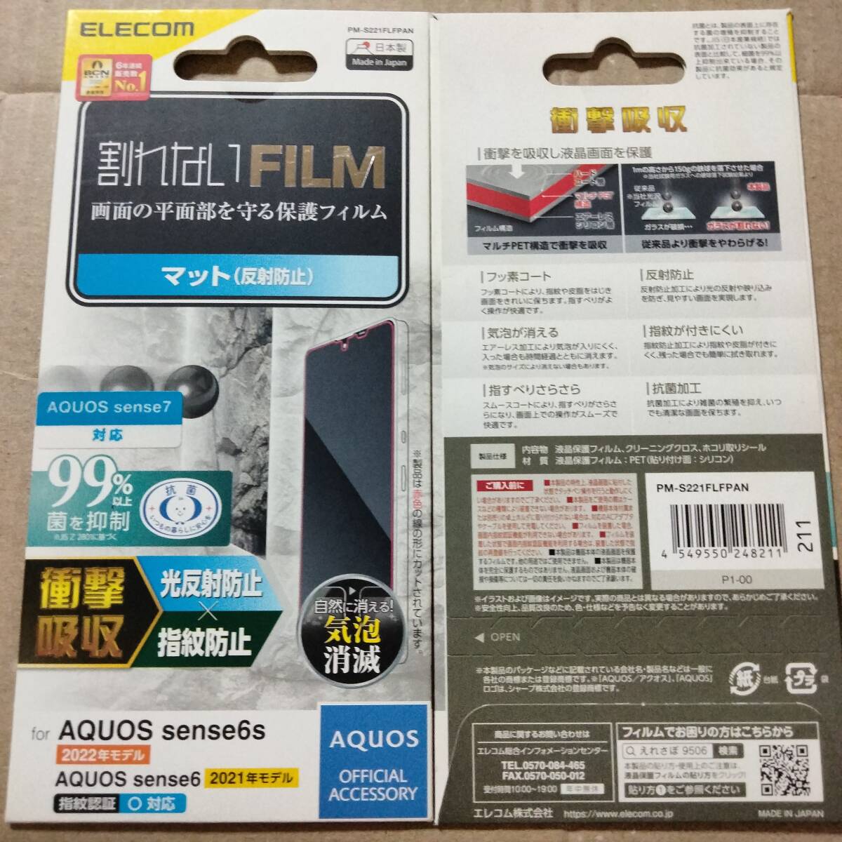 > ELECOM 日本製 AQUOS sense7 SH-53C SHG10 AQUOS sense6s SHG07 AQUOS sense6 SH-54B SHG05 衝撃吸収フィルム