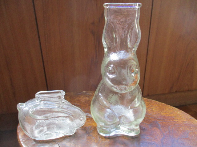 - うさぎ貯金箱大小2個セット ガラス瓶オブジェ当時物昭和レトロアンティークビンテージ