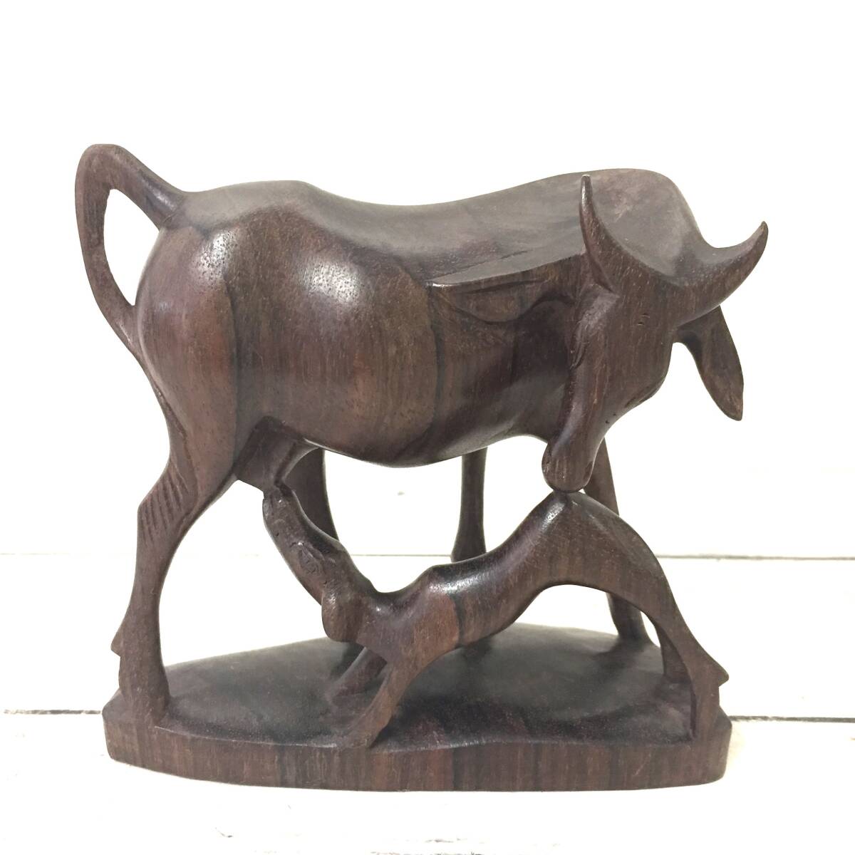 - 牛の親子の木彫り 黒檀 置き物 インテリア 一刀彫 Z50747