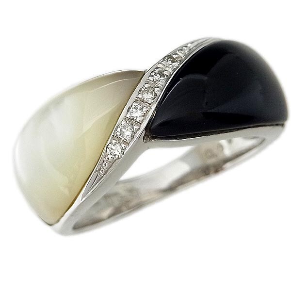 - K18WGファッションリング シェル オニキス指輪 D:0.06ct 6.5g 11号
