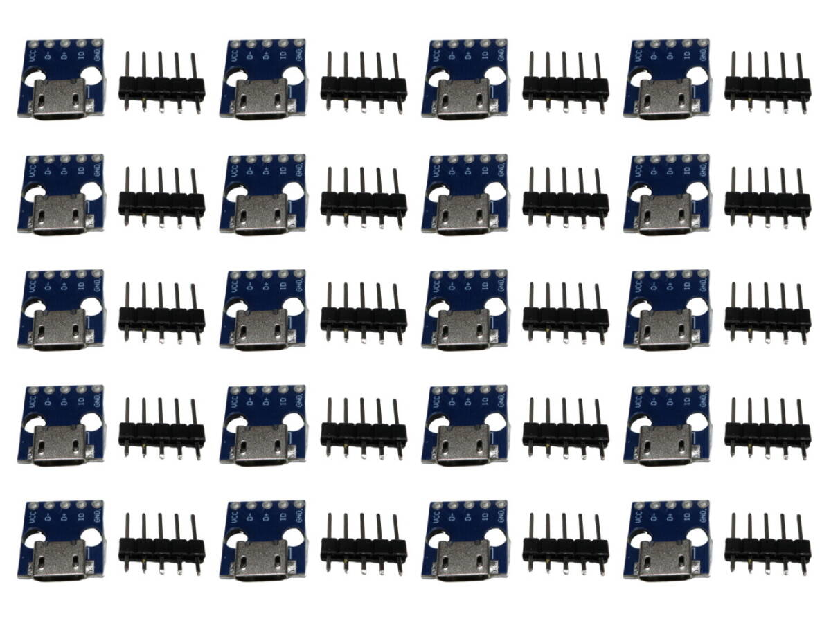 - マイクロUSB-DIP 20個 電源変換アダプタ 5pin 2.54mm メス コネクタ Type-b