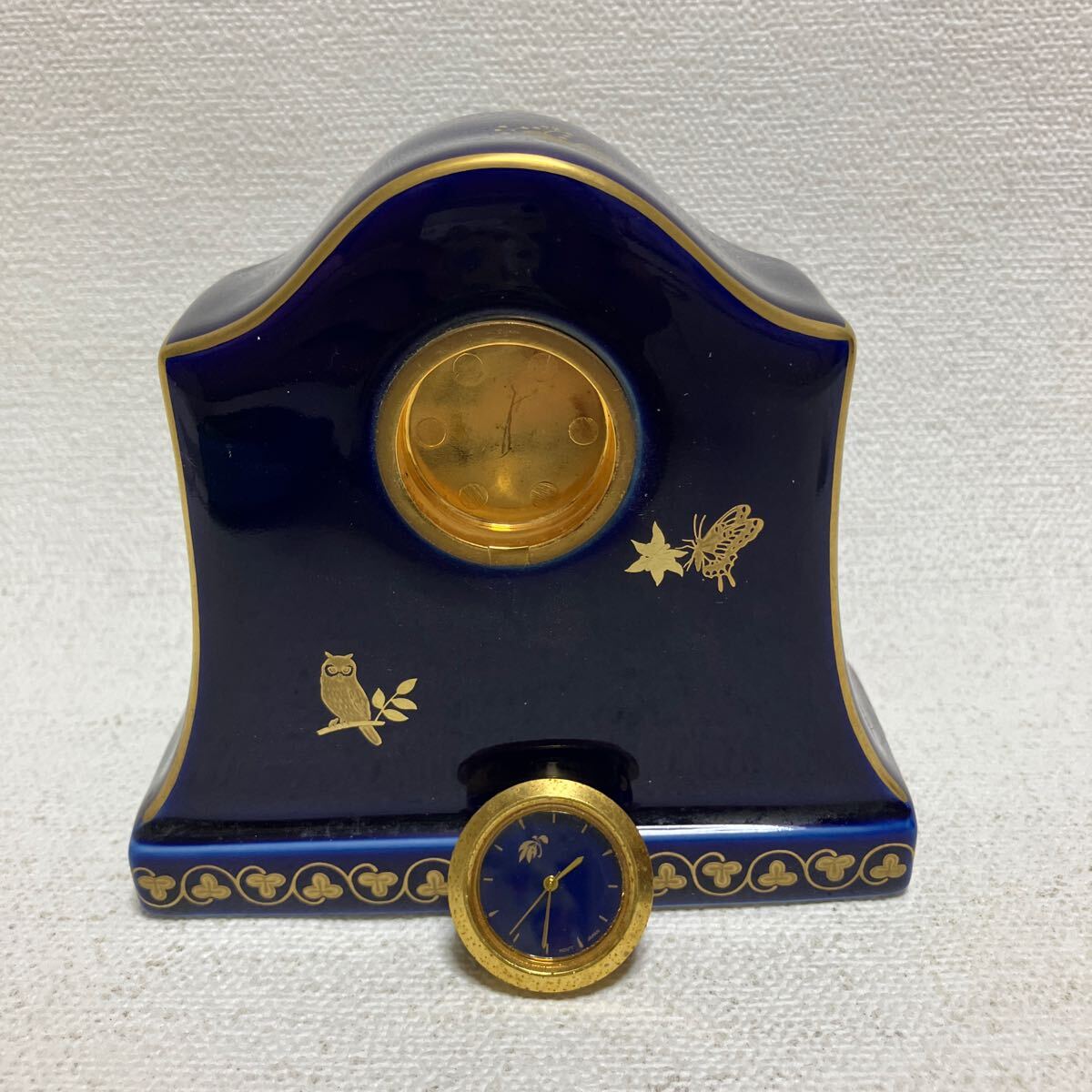 > c884 60 昭和レトロ ミニ置時計 陶器製 動作未確認 当時物 動物 インテリア 小さな とけい 時計周りに難あり しっかりとハマらず