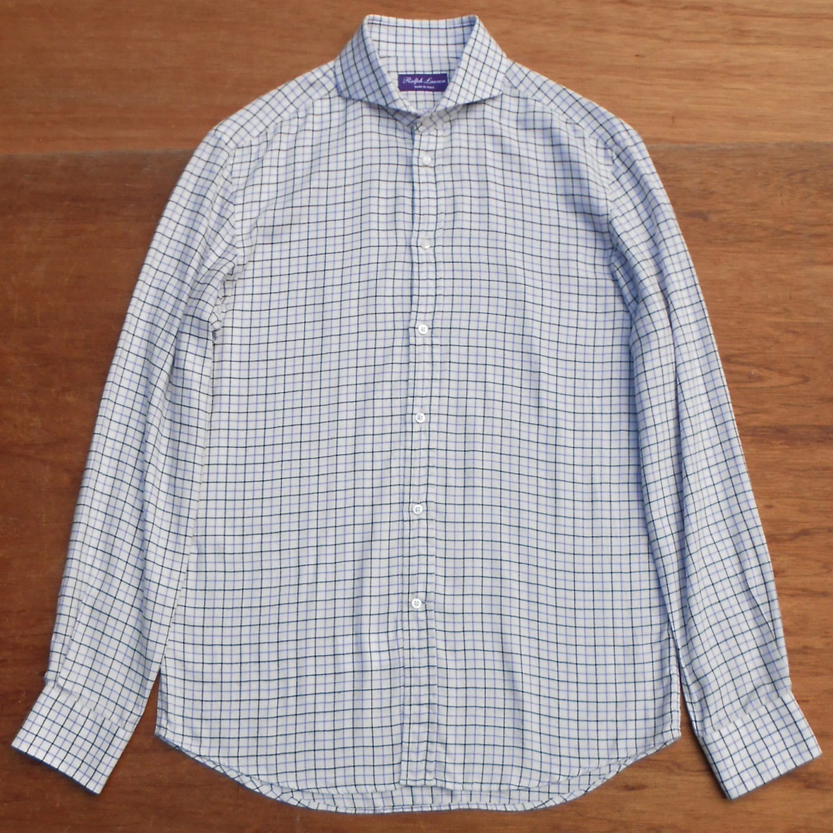 - 国内正規 Ralph Rauren Purple Label ラルフローレン パープルレーベル 長袖 フランネルシャツ 15.5 タッタソール 格子織柄 L~XL 白x黒x紫
