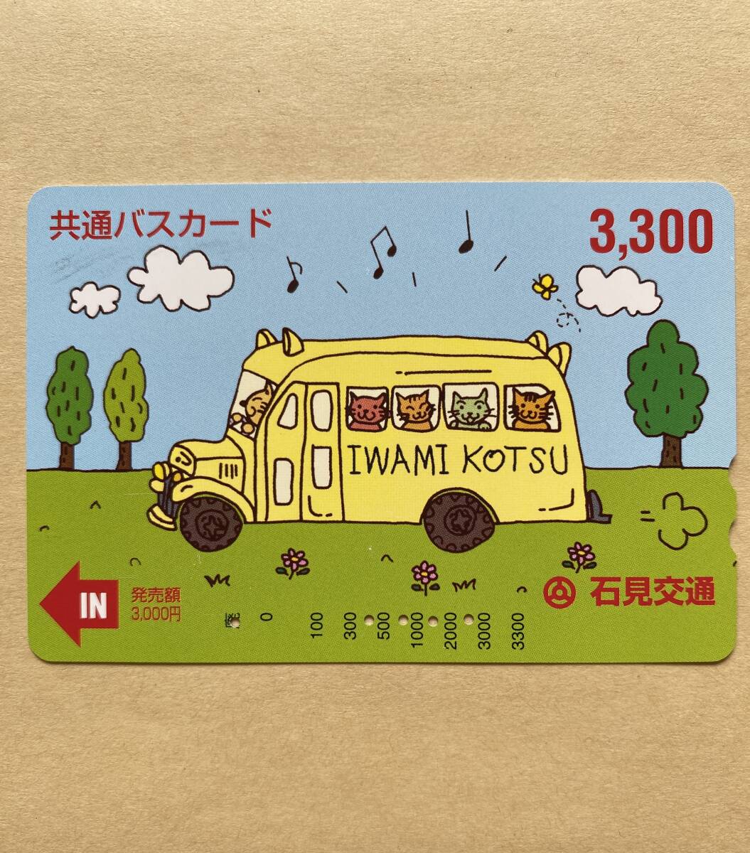 - 【使用済】 バスカード 石見交通 バス イラスト 黄