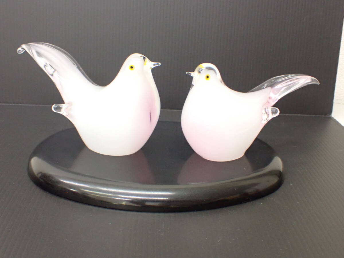 - 221-;(ガラス) マルティ グラス Multi Glass 鳥 2羽 置物 プラスティック台付き★
