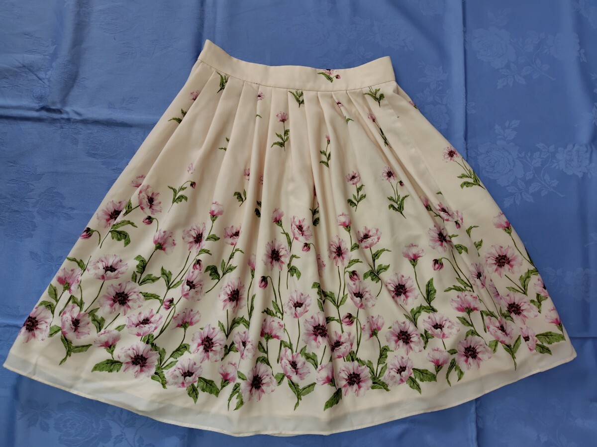 - デビュードフィオレ フラワーボーダープリントのスカート ベージュ×ピンク系