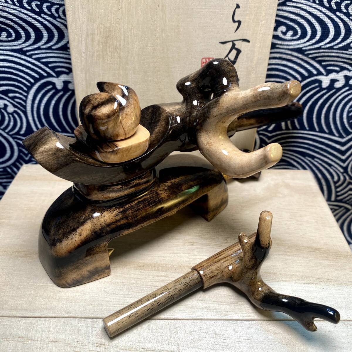 - ヘラブナ ★ 日本黒柿 ★ 貴重な材料 中型弓型万力 竿受あり特選品 F73