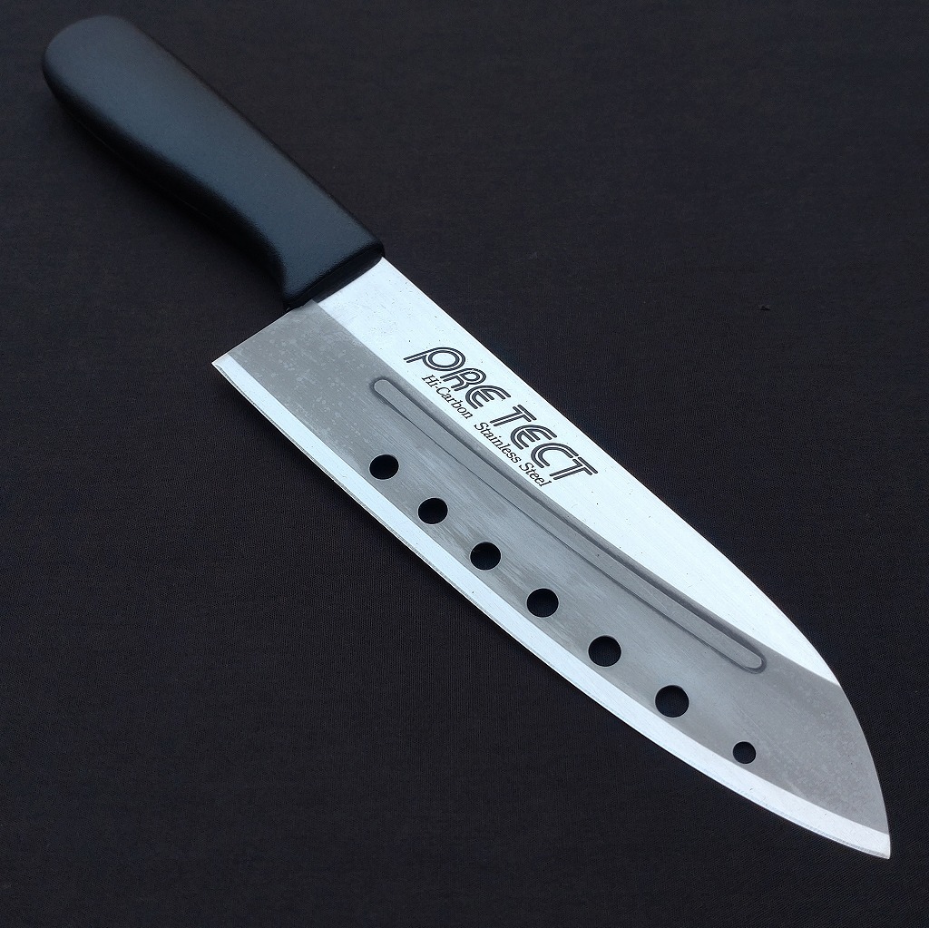 - 未使用 三徳包丁 穴あき包丁 PRE TECT 刃長約170㎜ 両刃 抗菌・抗カビ樹脂ハンドル 万能包丁 庖丁 日本製 Japanese Kitchen knife 【6230】