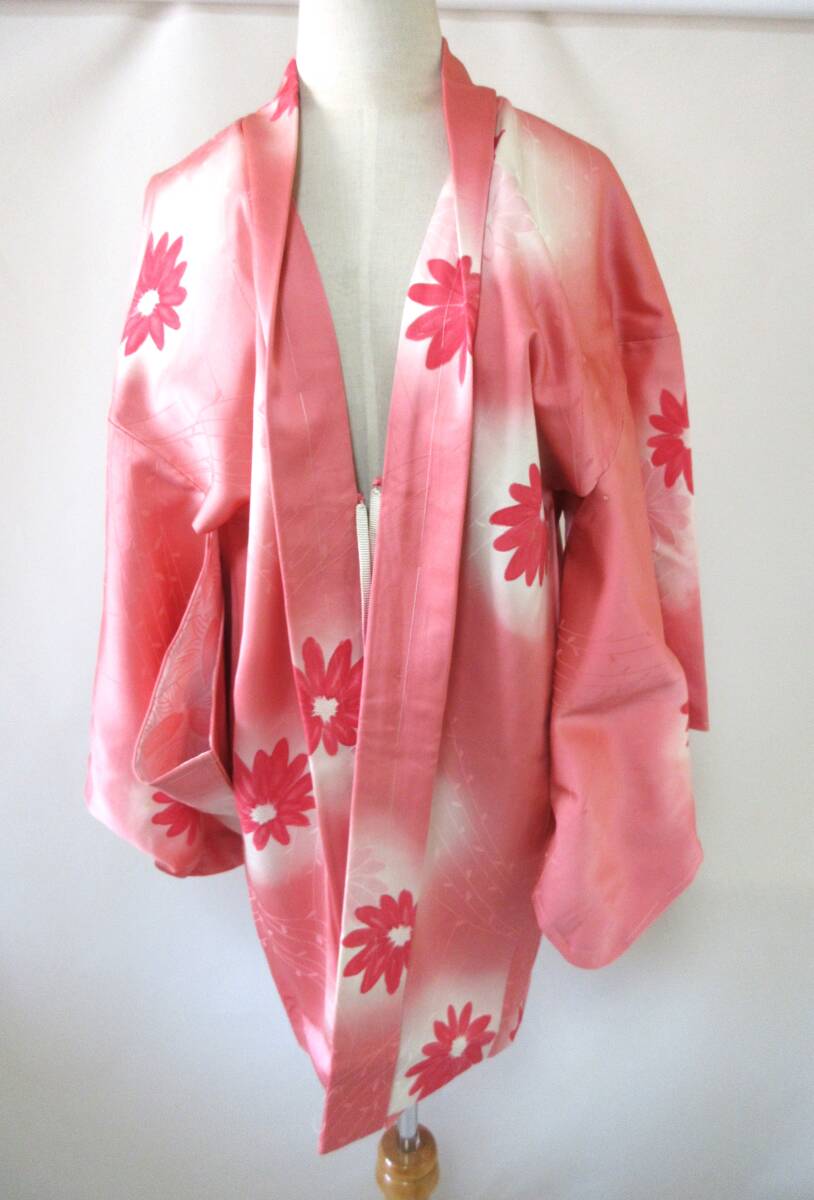 - 50-1.羽織 和装 ピンク 花柄 羽織紐付き