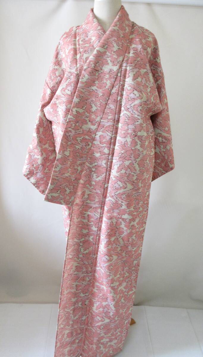 - 50-8.和装 着物 小紋 総柄 ピンク 和服 身丈約149㎝