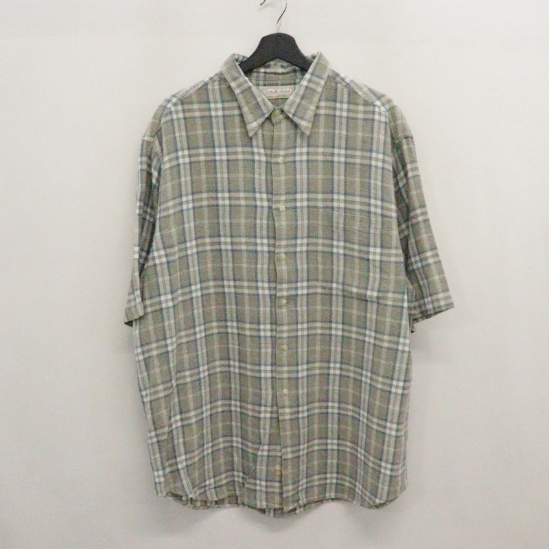 > n618 90sビンテージ MURANO 半袖 チェックシャツ■1990年代製 表記XLサイズ グレー アメカジ ストリート アンティーク トラッド 古着卸 80s