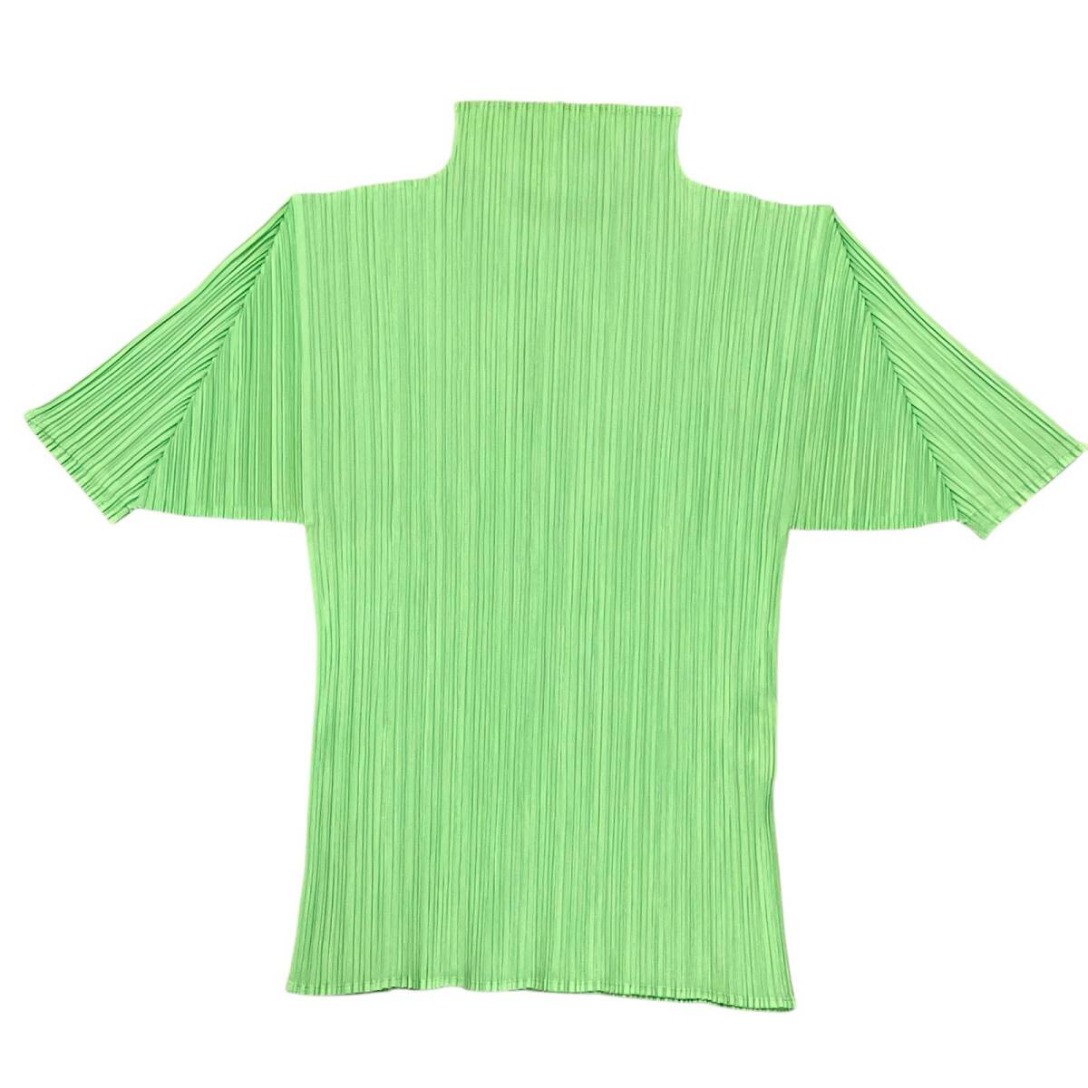 - ISSEY MIYAKE イッセイミヤケ プリーツプリーズ トップス 半袖 カットソー ハイネック ライトグリーン系 サイズ3 PP01-JK458