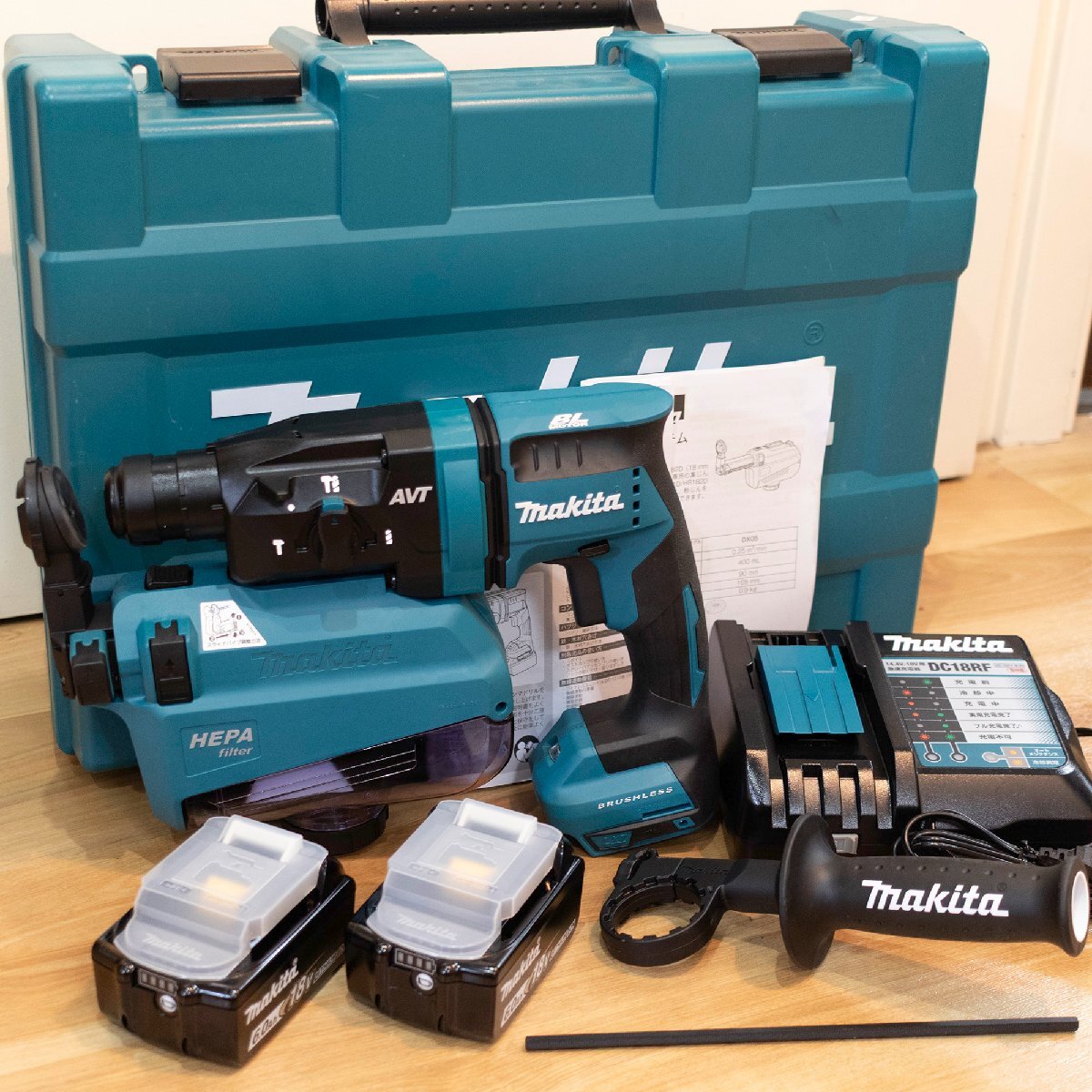 > 18mm充電式ハンマドリルバッテリー2個、充電器セット品 集じんシステムDX05 HR182DRGXV 18V makita(マキタ) おそらく未使用
