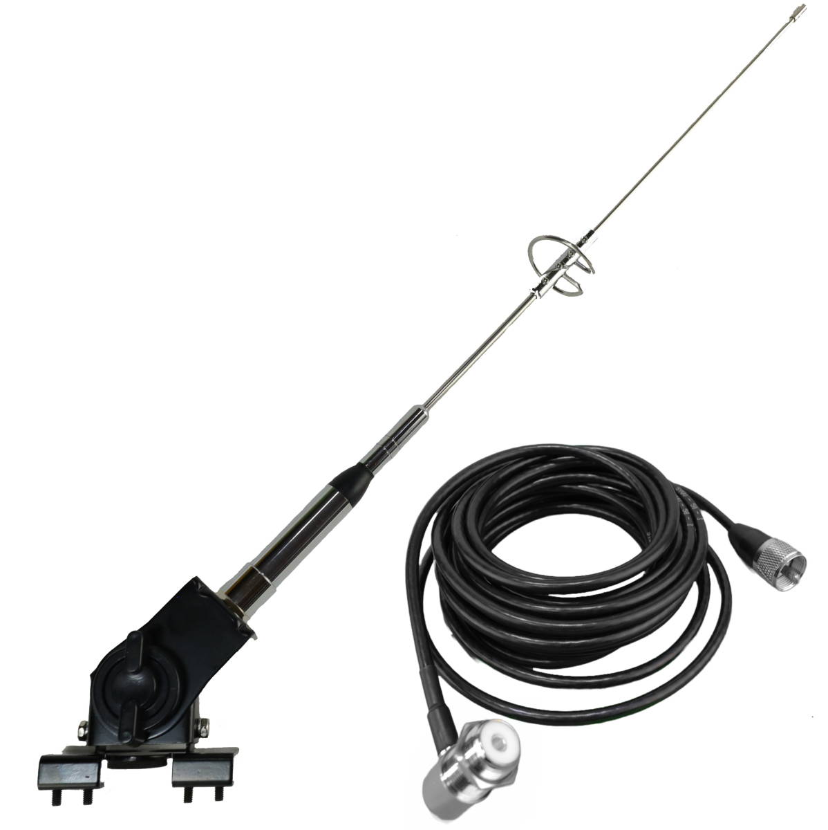 > 45cmデュアルアンテナ+2軸可動式ハッチバック/トランクアンテナ基台 RG58(3D-2V相当)同軸ケーブル5m MJL-MP接栓付 【フリマ対応】