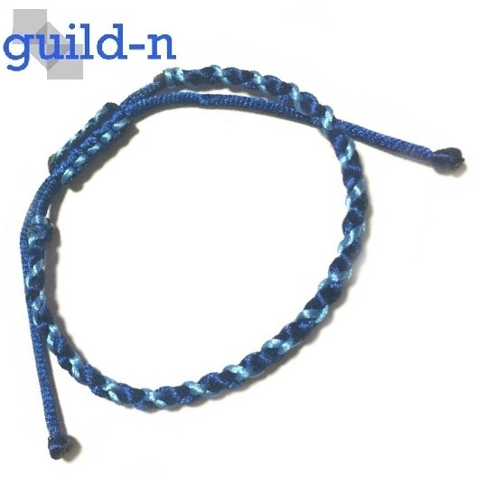 > guild-n ★ アクア+ネイビーブルー 紺色+水色 細目 組紐 サテン ミサンガ アンクレット ブレスレット 腕 足用 メンズ レディース 両用