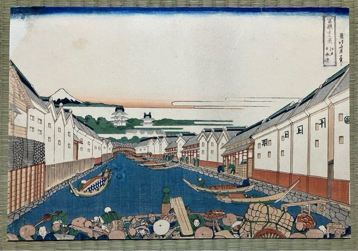 - 【真作】江戸期 本物浮世絵木版画 葛飾北斎 富嶽三十六景 江戸日本橋 名所絵 大判 錦絵 裏打ち 保存良い 検:広重 歌麿 写楽 国芳 芳年