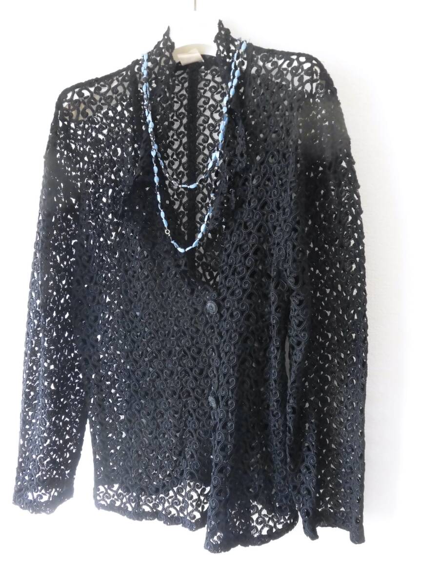 - ●豪華 Mondi *黒総レースジャケット*長袖宝飾釦2個/サイズL相当