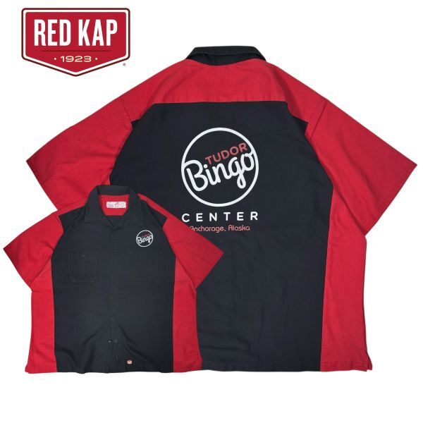 > ★TUDOR Bingo BIGロゴ★BIGサイズ★RED KAP半袖オープンワークシャツsizeXXL 比翼ボタン スリット ピスネーム ペンホルダー 古着 2351