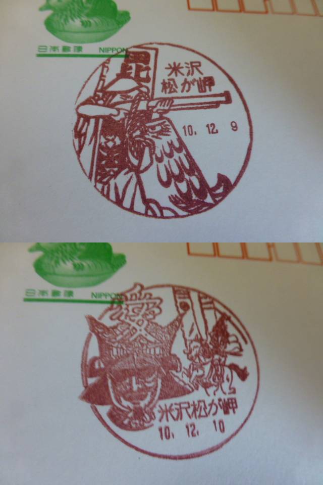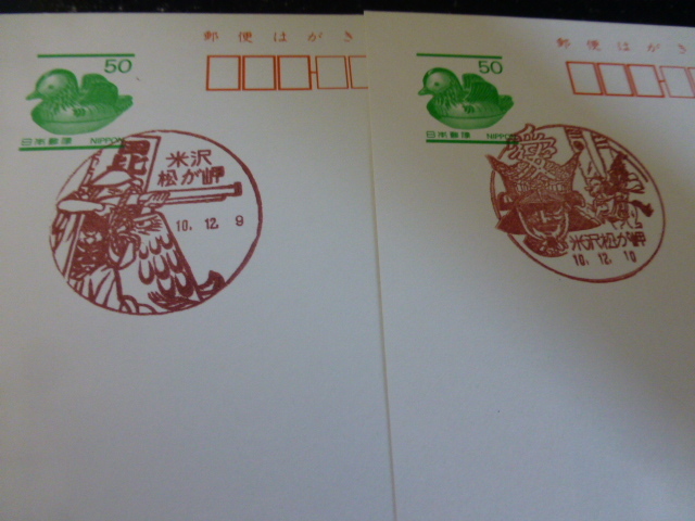 - ☆鴛鴦はがき 終日初日風景印 山形 米沢松が岬 H10.12.9~10