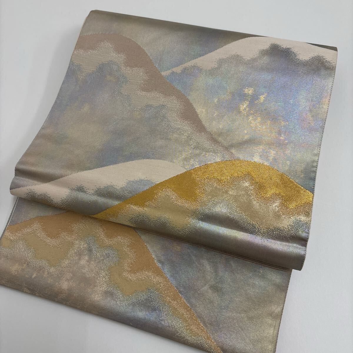- 袋帯 金彩 引箔 本金糸 山風景 正絹 W-3101