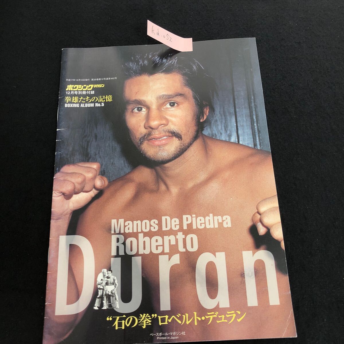 - Kd-052/ボクシングマガジン12月号別冊付録 ロベルトデュラン 挙雄たちの記憶 平成17年12月発行/L1/70723