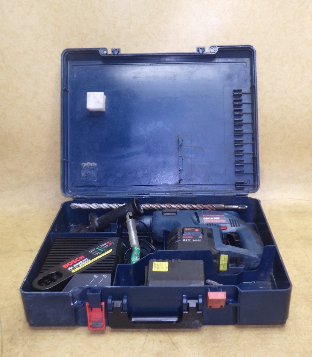 > *【半ジャンク・正転のみ動作】BOSCH ボッシュ バッテリー ハンマードリル GBH24 VSB 24Vバッテリー2個・充電器付 SDSプラス ハンマドリル