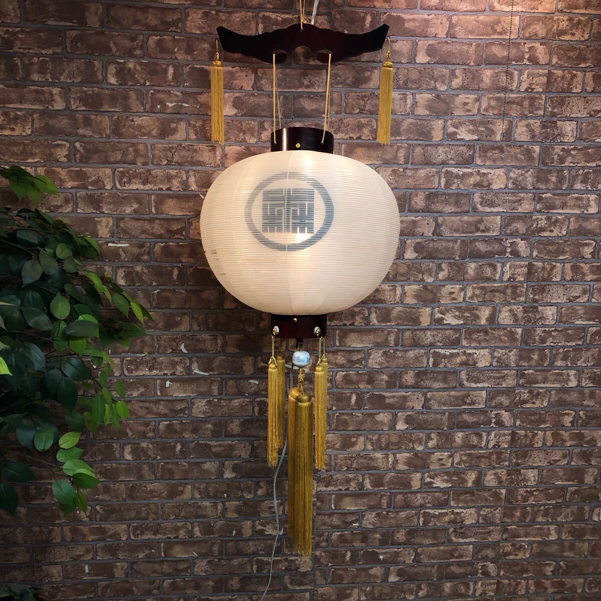- H3031 家紋入り提灯 絹 桜 御殿丸 15号 二重 白紋天 やぶれ有り