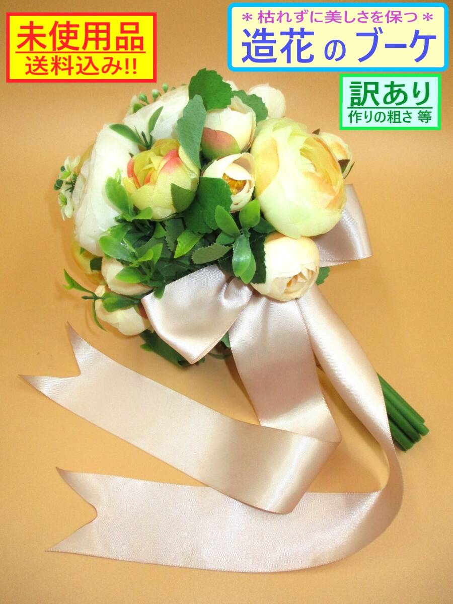 > 訳あり 未使用 かわいい 造花 花束 ブーケ イエロー系 長期保存 枯れない 花 インテリア フラワー フェイク 黄 リボン 花瓶 飾り 海外製