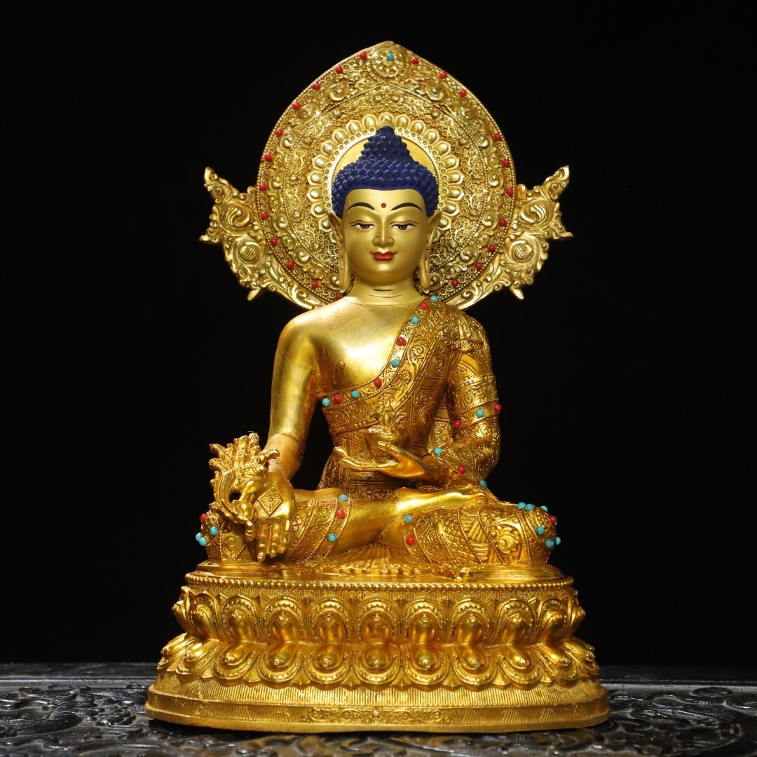- ▽鴻▽ 銅製 塗金 藥師仏 仏像 宗教 仏教古美術 供養品 古賞物 古董品 時代物 稀少珍品 中国古玩 中国古美術