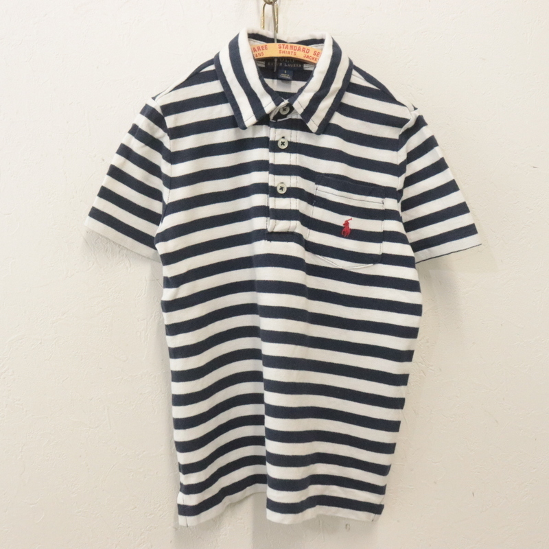 > KD506 2000年代製 RalphLauren ラルフローレン 半袖ポロシャツ■00s 表記6サイズ 子供服 KIDS キッズ ネイビー ボーダー 古着 アメカジ 90s