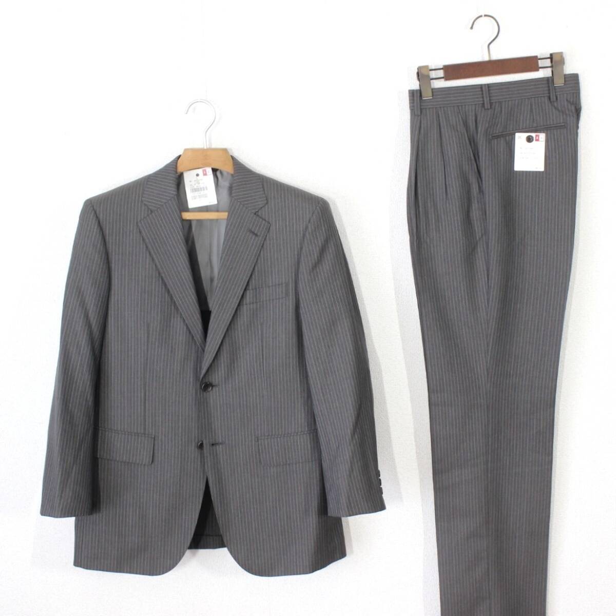 > 84【新品未使用】ダーバン スーツ A4 メンズ M モヘヤ入りウール グレー ストライプ 面接 ビジネス tqe D’URBAN 春夏秋 ★新品未使用★