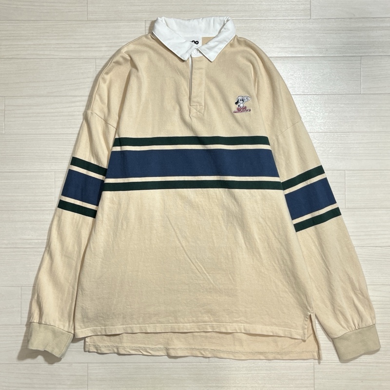 > ●9090×centimeter/ナインティナインティ×センチメーター/胸ワンポイント刺繍/ボーダーライン/ラガーシャツ/オーバーサイズ/L/ベージュ