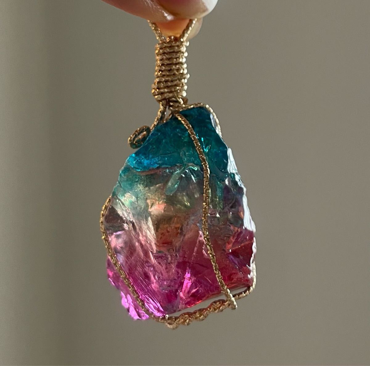 - 水晶のペンダントトップ 002 アクセサリー クリスタル パワーストーン 天然石 幸運 ラッキー 魔除 お守 風水晶 カラフル 浄化