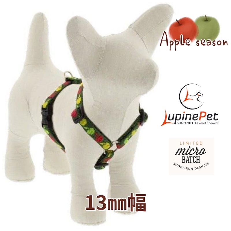 > アップルシーズン柄・ローマンハーネス・大・胴回り30-50cm・13mm幅 LUPINEルパイン アメリカ製 軽量 丈夫 小型犬