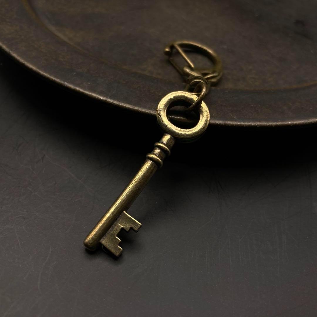 > 198 真鍮 キーホルダー 鍵 アンティーク キー ビンテージ 風水 金運 開運 幸運 レトロ 真鍮製 チャーム アクセサリー パーツ ハンドメイド