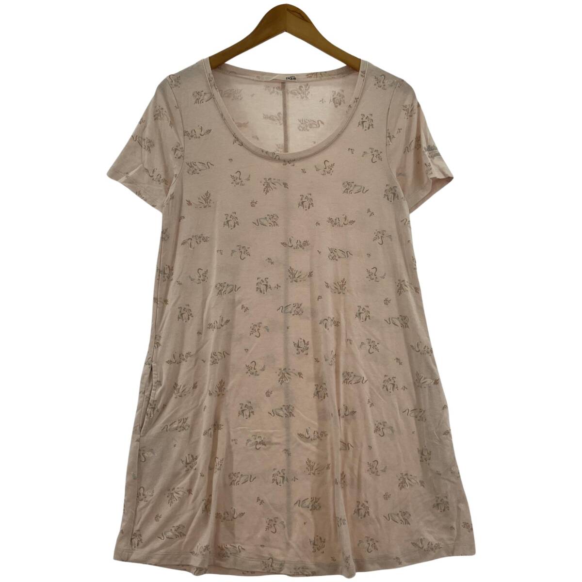 > gelato pique ジェラートピケ 総柄 Uネック ロング カットソー sizeF/ピンクベージュ ゆうパケットOK