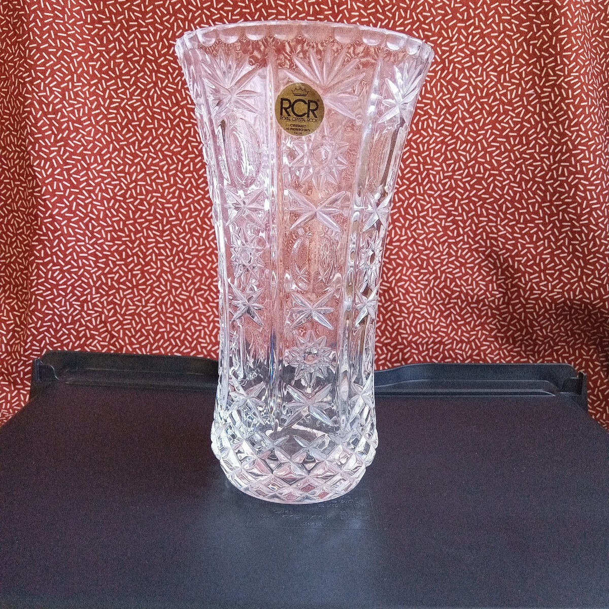 - 中古☆ RCR ロイヤル クリスタル ロック ガラス 花瓶 花器 フラワーベース インテリア クリスタル ROYAL 昭和 レトロ