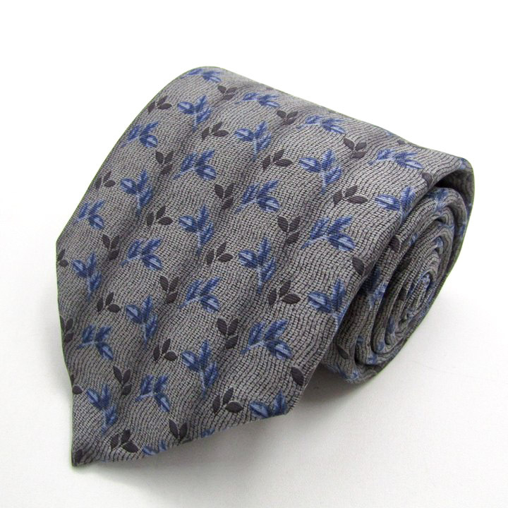 - リキエル オム ブランド ネクタイ 総柄 リーフ柄 シルク フランス製 PO メンズ グレー RYKIEL HOMME