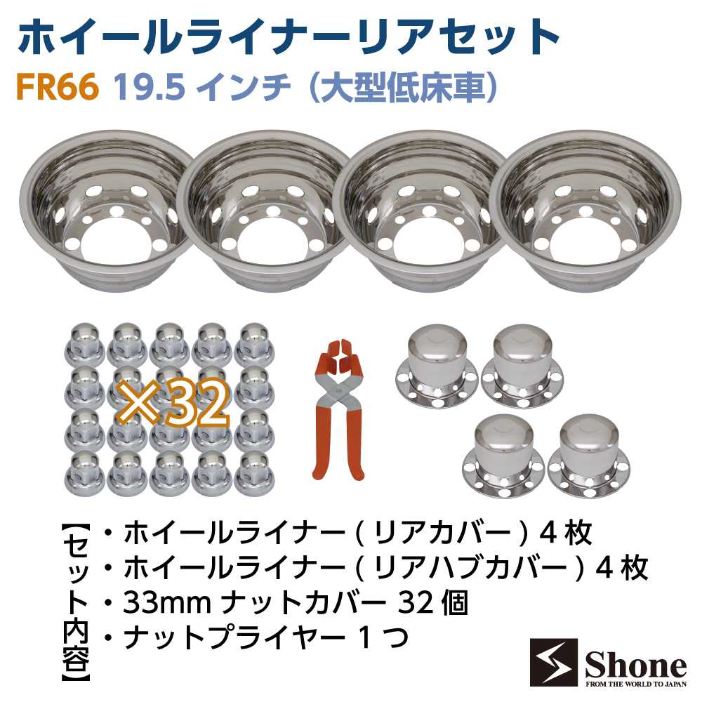 - 新品ホイールライナー リア用 4枚セット SHONE 会社宛 送料無料 19.5インチ 8穴 ISO規格 ホイールカバー ナットキャップ付 大型 NO,FR66-R4