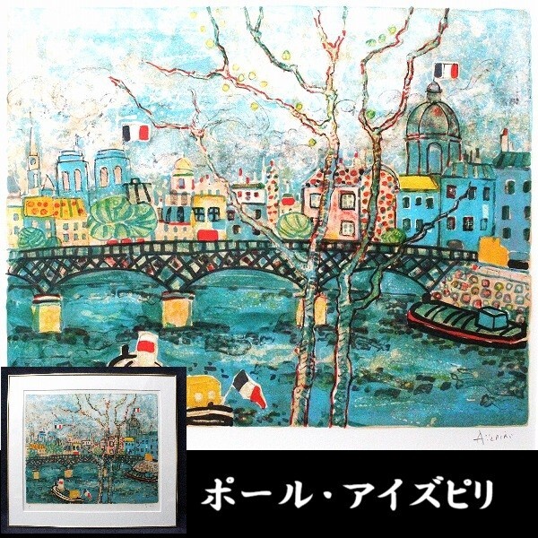 - アイズピリ 「セーヌ川とポン・デザール」 リトグラフ 直筆サイン入 限定100部 明るい色調の人気作家 D989