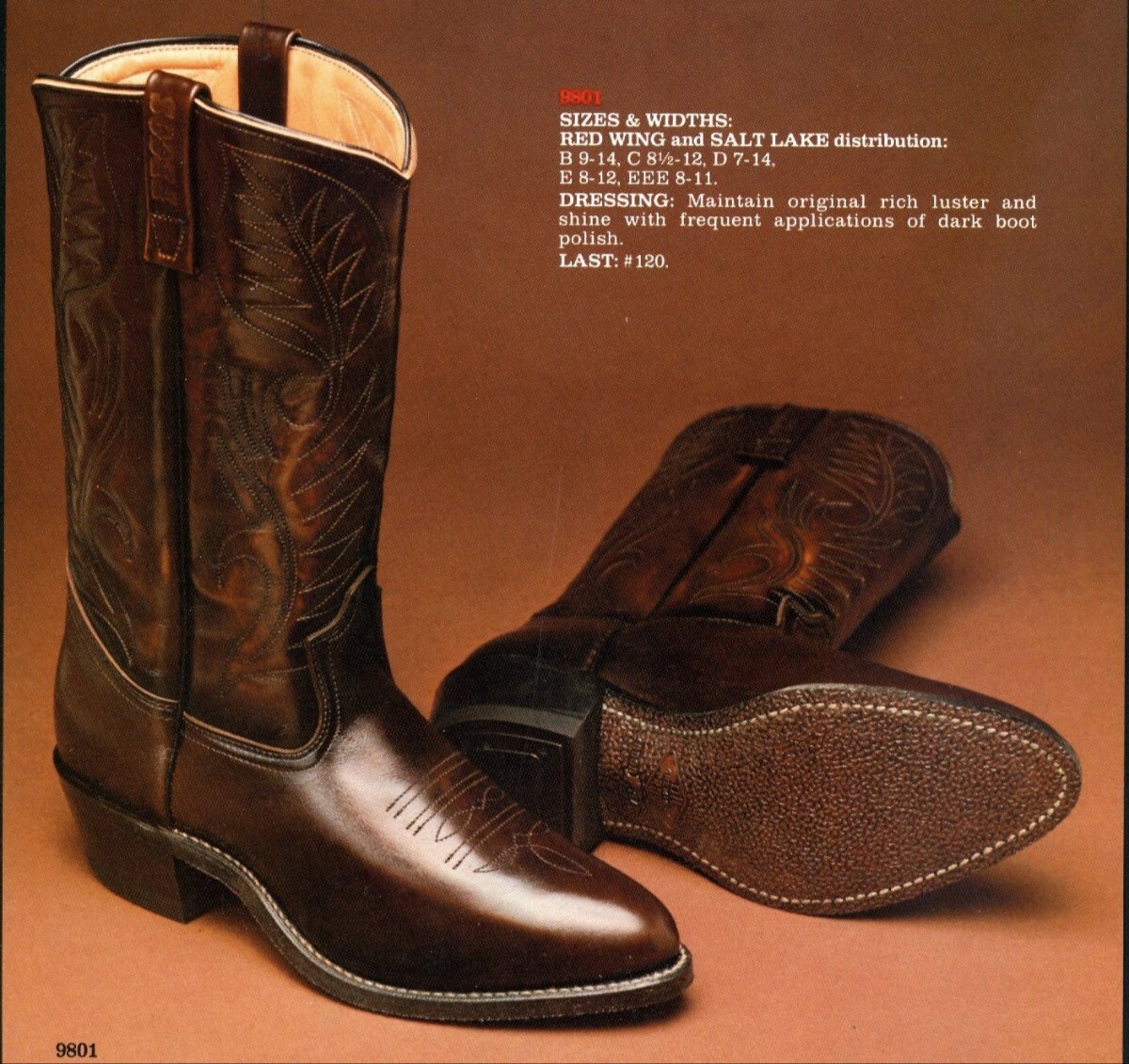 > USA製 70年後半~80年代 プリント羽根タグ レッドウィング RED WING 9801 ウエスタンブーツ 茶 ペコスブーツ 10C 26,5~27cm