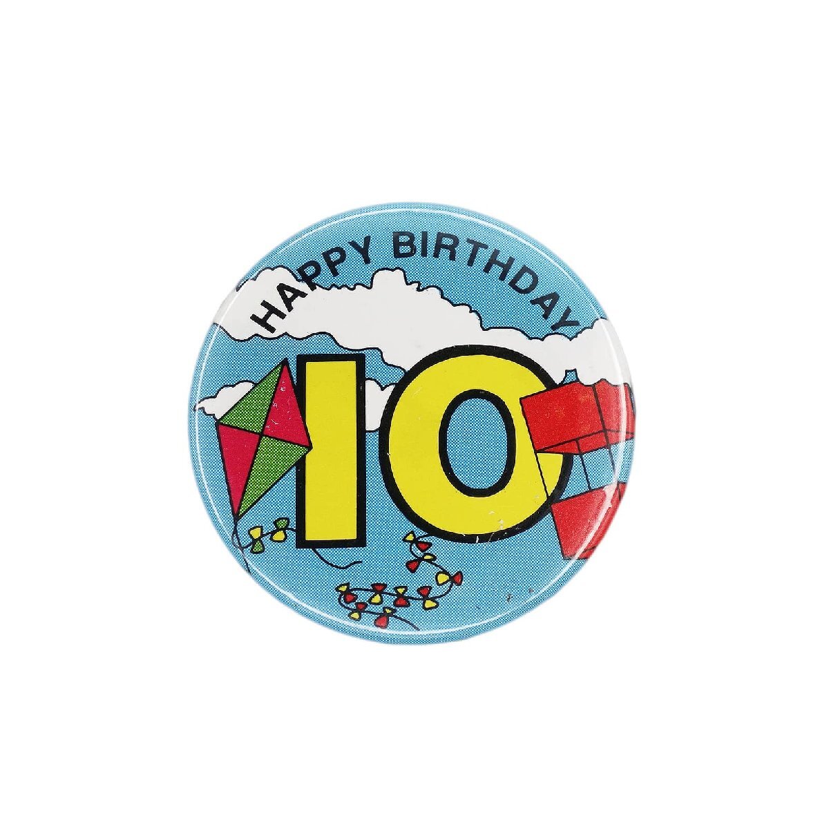 - HAPPY BIRTHDAY 凧と数字10 レトロ 缶バッジ ビンテージ 缶バッチ ピンバッチ イギリス輸入雑貨 10歳 誕生日
