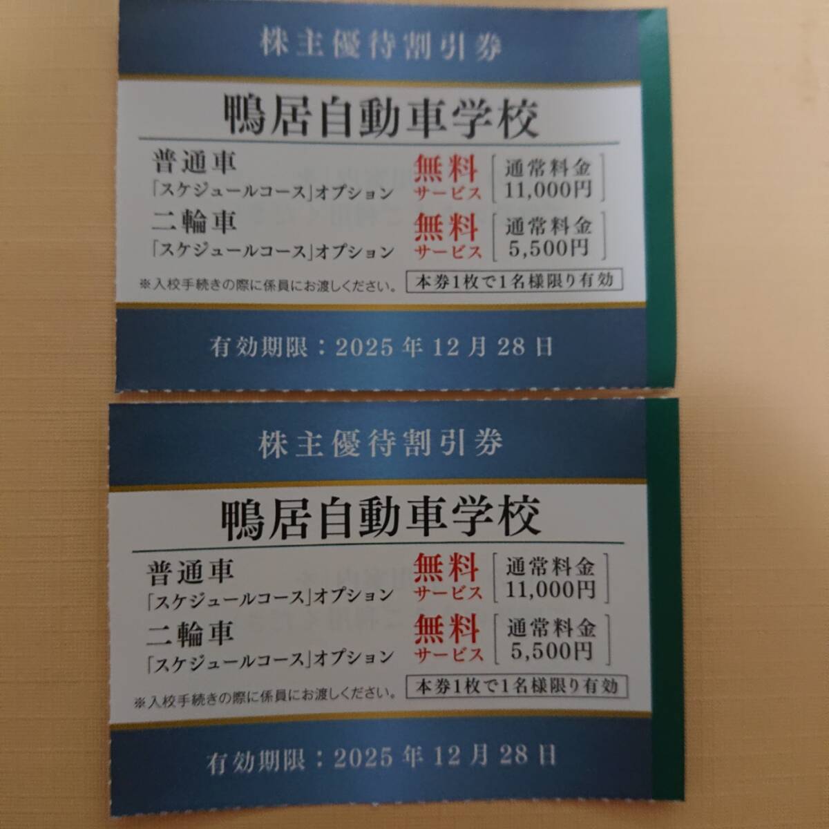 - ★ 鴨居自動車学校 株主優待割引券 2枚
