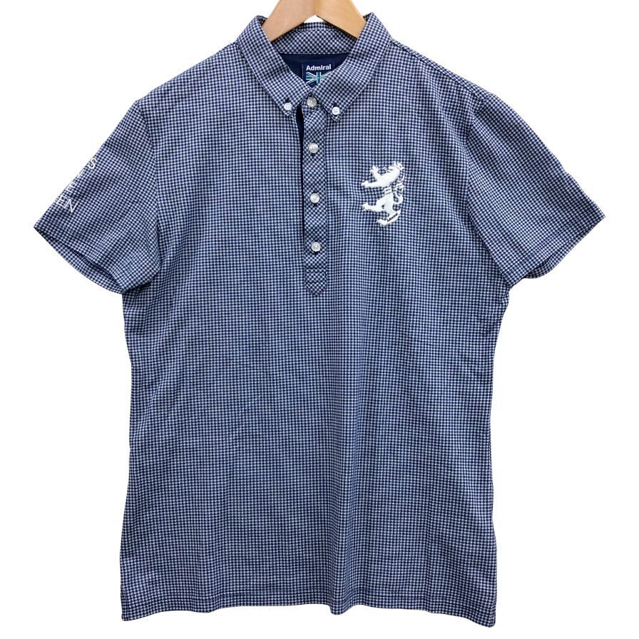 - 美品◆ポロシャツ アドミラル ゴルフ ポロシャツ 刺繍 ロゴ チャック 半袖 コットン ポリエステル ゴルフウェア ブルー サイズL【AFB18】