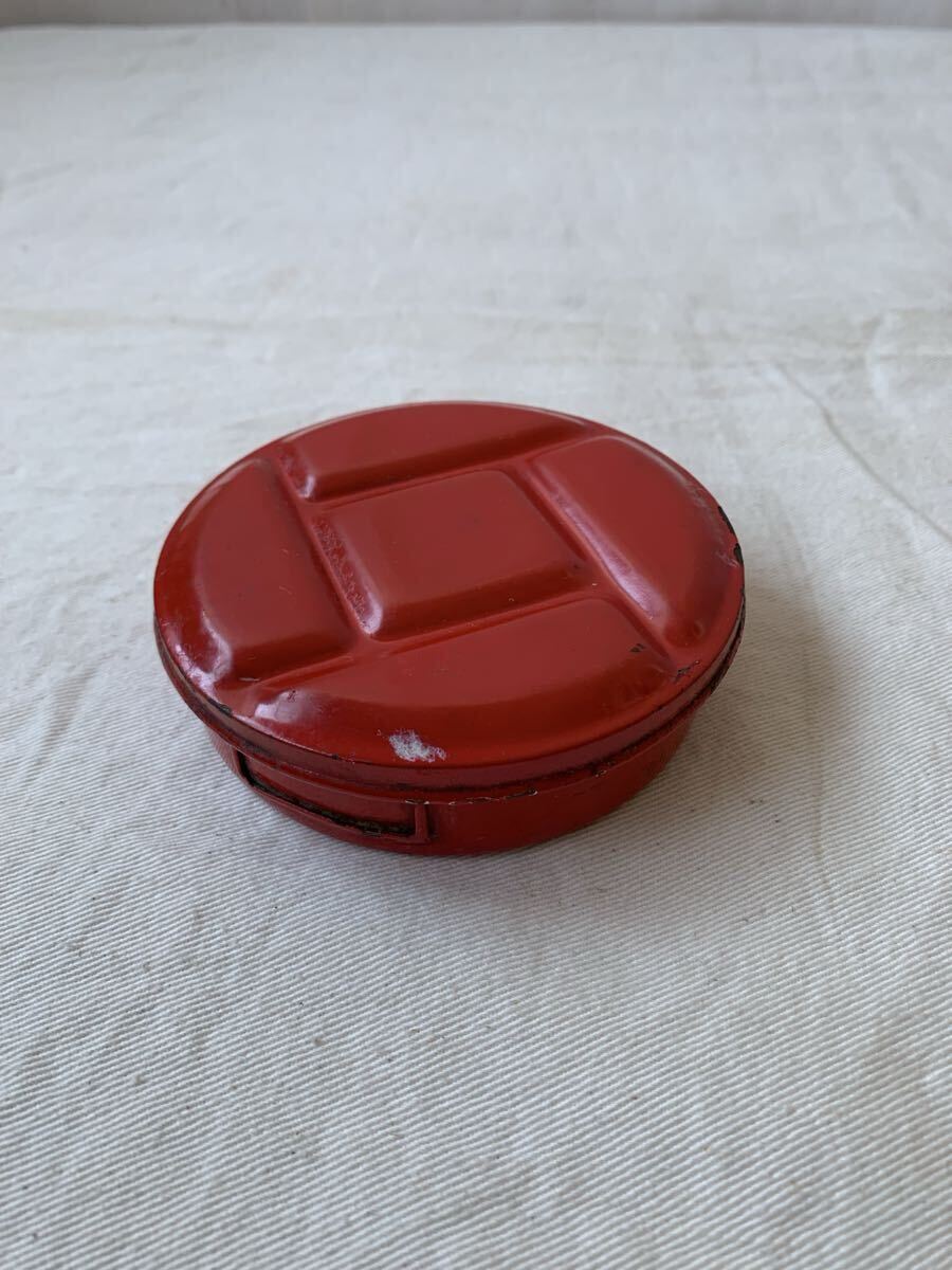- デザインが素敵な3仕切り蓋付円形アイアンケース インテリアディスプレイ小物入れインダストリアル古道具アンティークビンテージ店舗什器