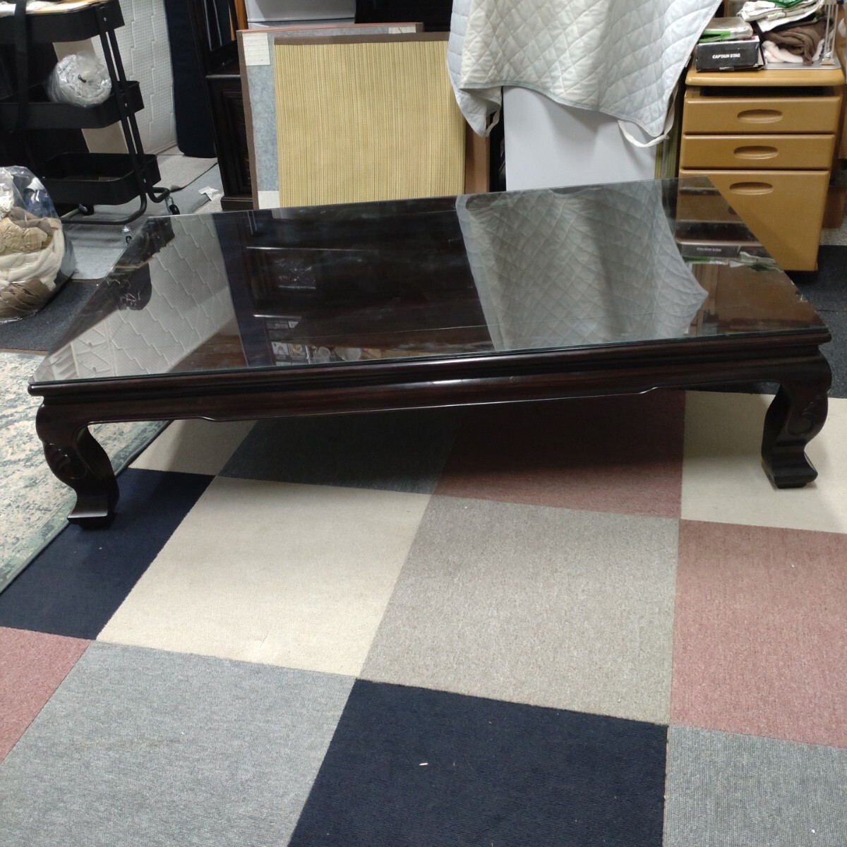 - 【店頭渡し限定】和家具 座卓 木製 座敷テーブル ガラス天板付き W1515mm 中古 現状渡し