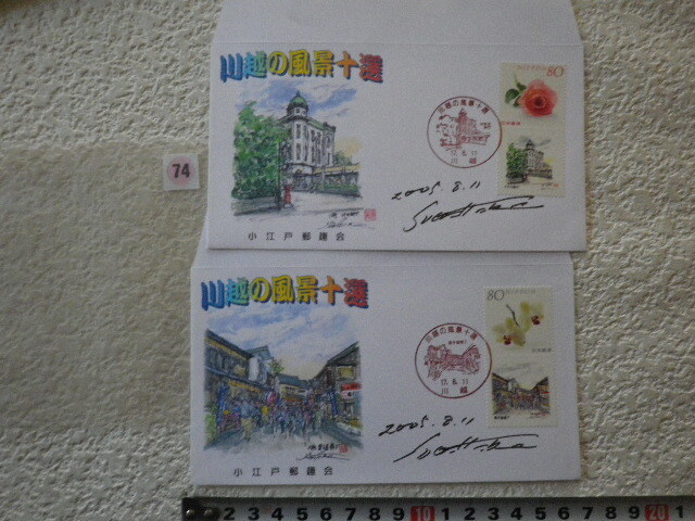 - 川越の風景十選 2005年 菓子屋横丁・旧埼玉銀行 フレーム切手 画家サイン入●74●