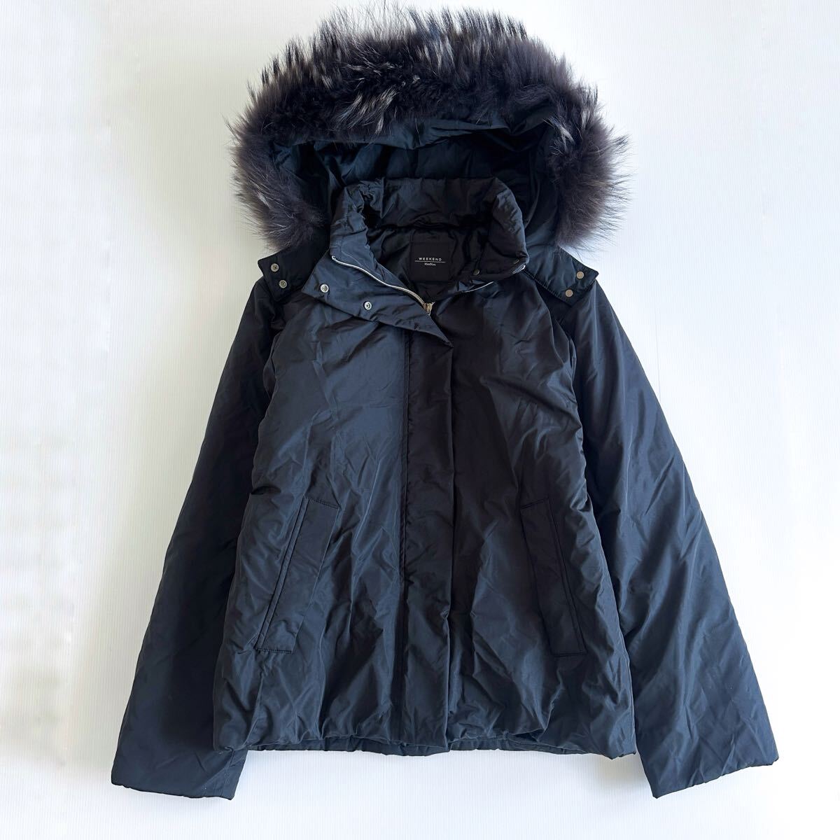 > ★ Weekend MaxMara マックスマーラ ウィークエンド / 中綿 ダウン ファーフード ショートコート ネイビー I42 大きいサイズ