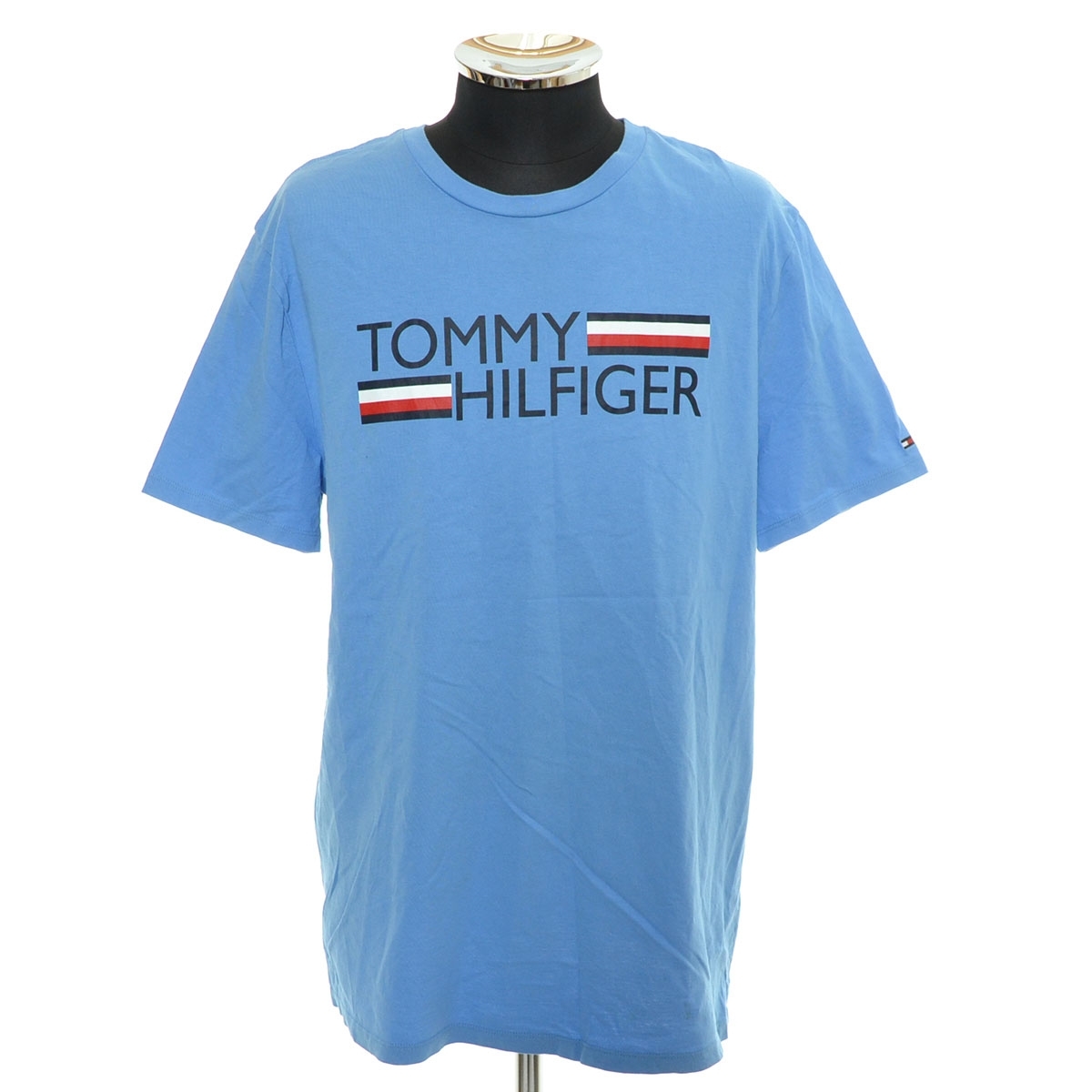 > ●555240 TOMMY HILFIGER トミーヒルフィガー ●Tシャツ 半袖 ロゴプリント サイズL メンズ ブルー