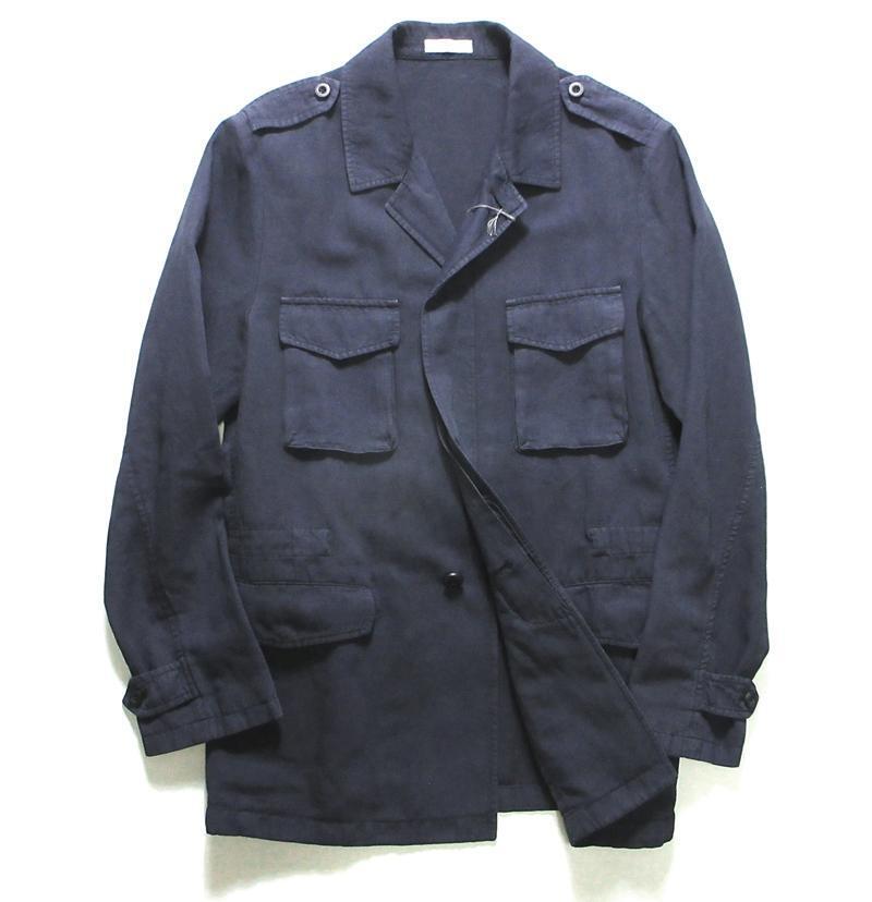 - 新品 BOGLIOLI ボリオリ ガーメントダイ コットン リネン M-43 フィールドジャケット ネイビー 46 春夏